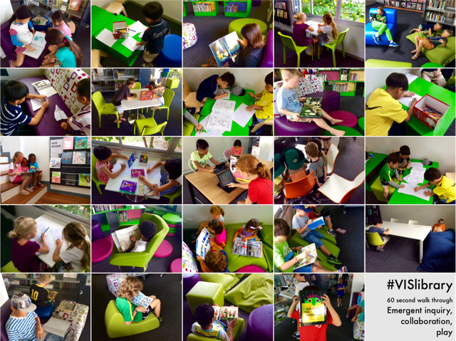 While it is still too early to use circulation data to investigate changes in library usage, the volume and variety of library visitors has changed dramatically. But most importantly, the variety of independent student led inquiry in the library has confirmed the theories and philosophies behind the changes we made. I can now see the emergent nature of student learning happening before my eyes through access that is student led, inquiry focussed and above all, fun. When I walk around the library at break times I see students engaged in a wide variety of learning engagements entirely initiated and led by the students as they naturally respond to their context. There are what we would describe as literacy circles, mother tongue buddy reading, solitary reading for pleasure, collaborative studies and investigations (sharks, castles and dragons are common areas for exploration), access to all text types and genre and parallel reading (parallel play but with books).