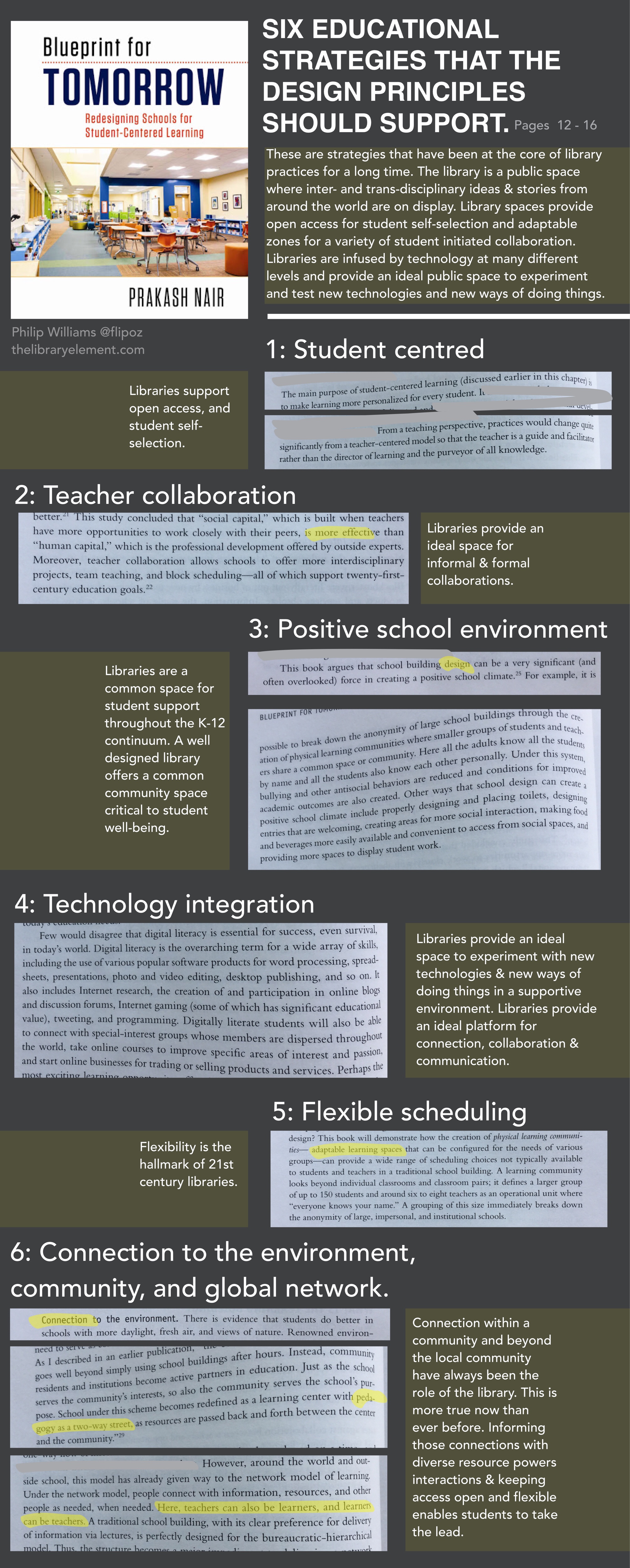 Inspired by our secondary students who have been using Booksnaps over recent weeks, I decided to make my own. The problem is that my #Booksnap grew to become a #BigBookSnap. I am definitely biased here but it often seems that the school library is an obvious place to support student centred learning through collaboration, supportive environments, technology, flexibility and opportunities for connection, since these have long been the core functions of the school library. This BigBookSnap picks up on some of Nair’s strategies and connects them directly with the library. This is not really in the spirit of the concise booksnap but here it is anyway.